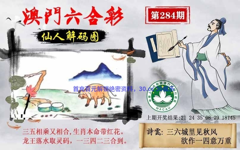 284期六肖 | 牛马蛇龙猪羊 | 开:牛41中 |